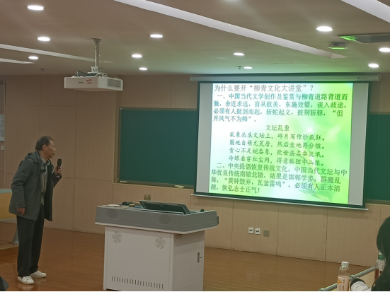 讲座中,刘振勇老师围绕柳青的文学创作道路、《创业史》的文学价值与艺术成就展开深入讲解。他结合小说中典型环境的构建、典型人物的塑造、时间与空间的叙事艺术等方面,系统剖析了《创业史》如何通过“典型化”手法,真实再现了中国农村在社会主义改造初期的历史图景与农民精神世界的变迁。刘老师指出,柳青不仅是“深入生活、扎根人民”的践行者,更是将中国古典文学传统与西方叙事技巧融会贯通的文学大师。