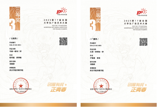 全国大学生广告艺术大赛自2005年创办以来,已成为国内规模最大、覆盖最广、影响力最强的高校广告赛事之一。陕西赛区历经二十年发展,已成为推动区域广告教育创新与人才培养的重要平台。此次我院师生双线斩获国奖,并获“优秀组织单位”殊荣,是对我院传媒人才培养体系的有力印证,也是“产教融合、协同育人”理念落地生根的生动体现。